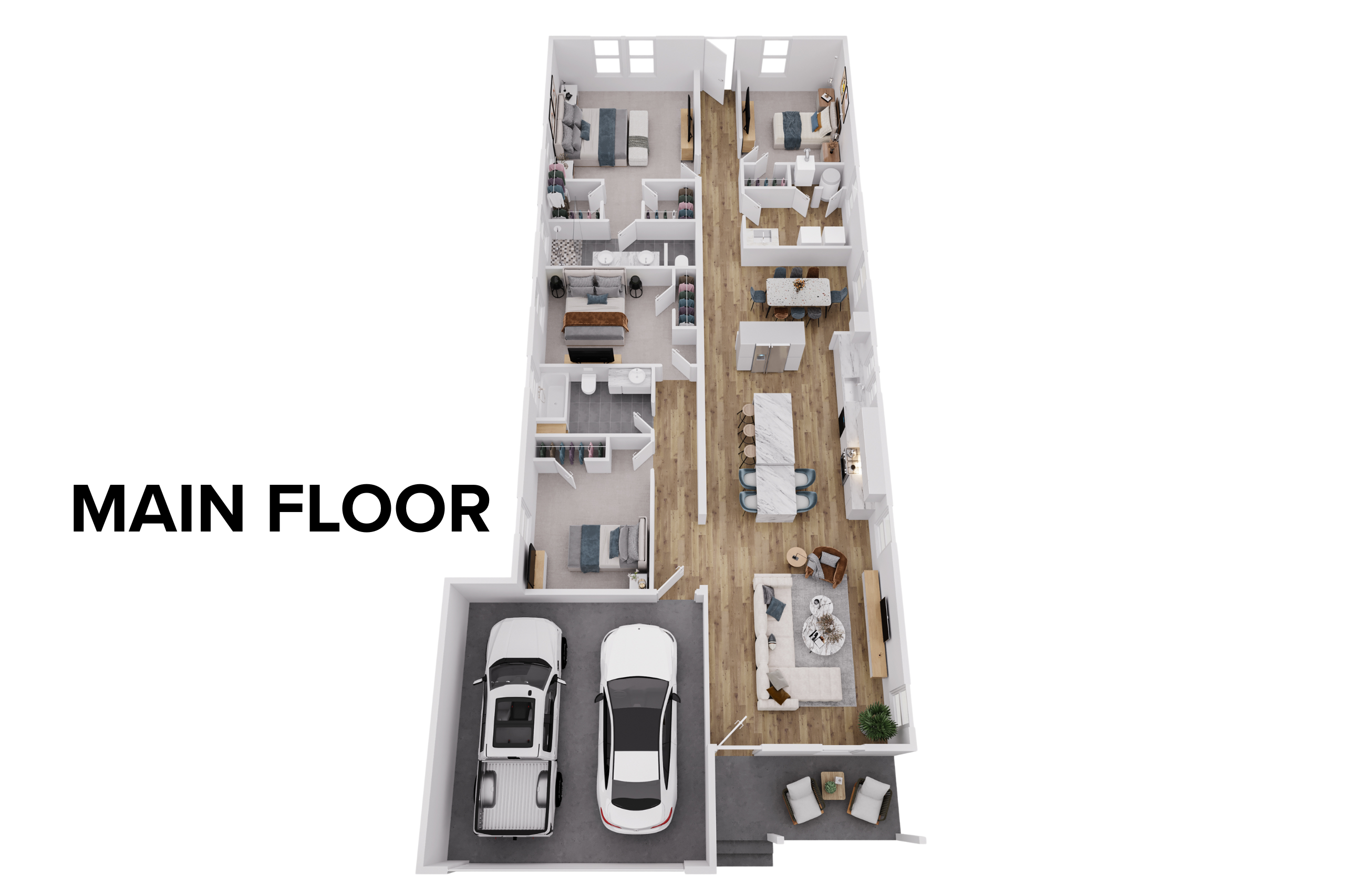 At the heart of the Acacia is an open-concept layout that seamlessly connects the kitchen, dining area, and great room, creating a welcoming space for everyday routines and casual entertaining. The first-floor primary suite is privately positioned, offering a relaxing retreat with convenient access to the main living areas. Three additional bedrooms provide flexibility for children, guests, or a home office, allowing the home to adapt easily as family needs change.