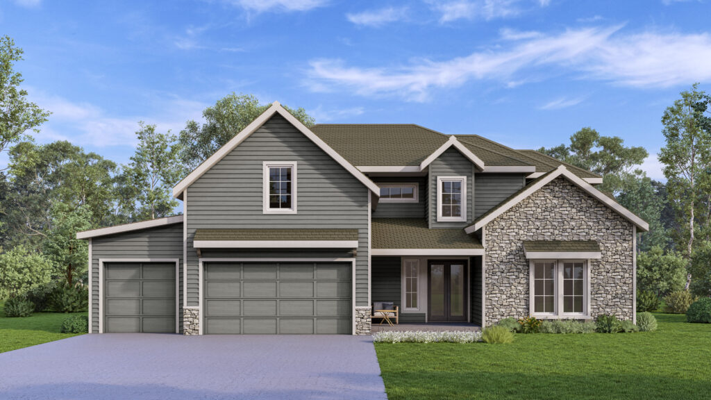 The Lago is a stunning 1.5-story home offering approximately 3,392 square feet of elevated living space, designed for homeowners seeking luxury and flexibility in new construction homes in Kansas City. With five bedrooms, six bathrooms, and a three-car garage, this plan delivers both elegance and functionality.