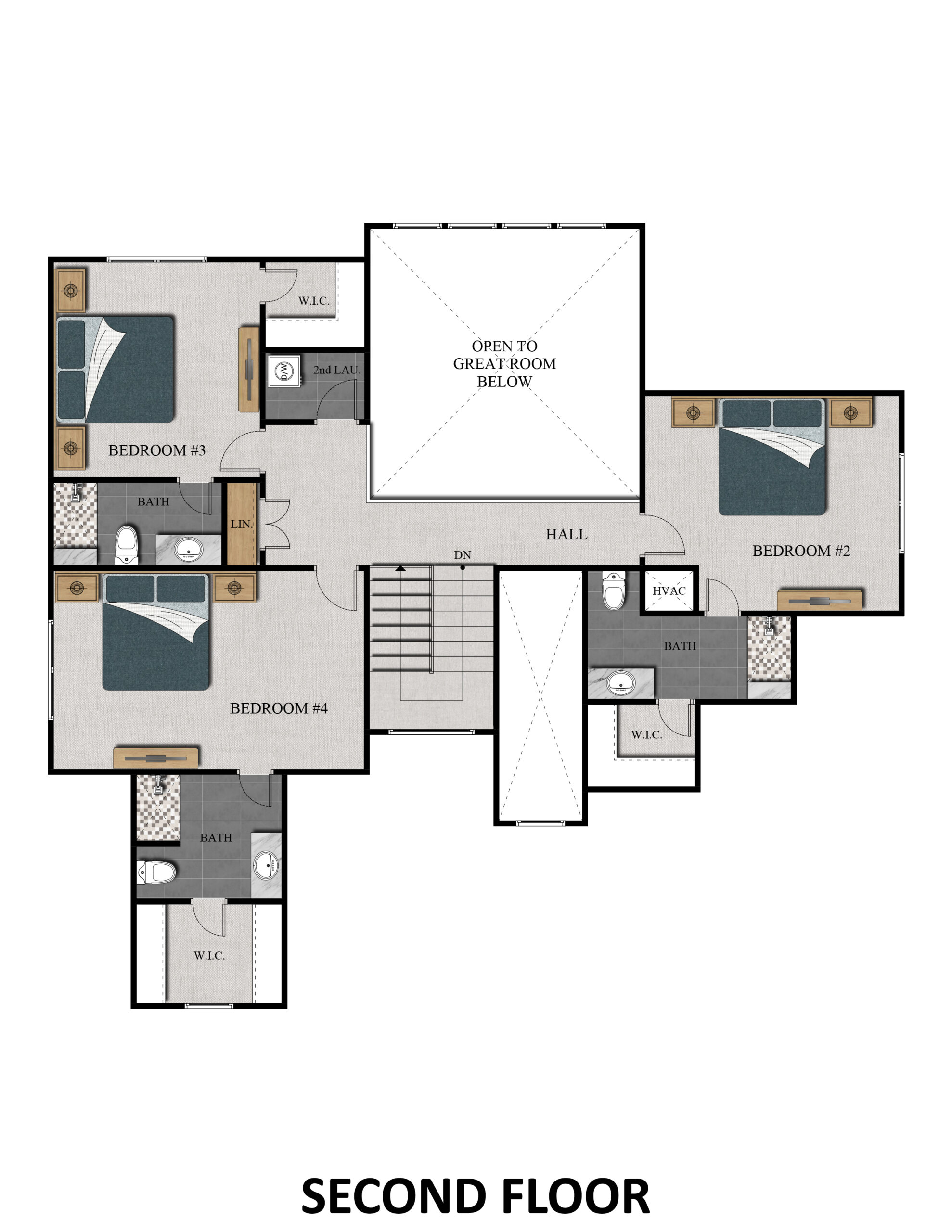 The Lago is a stunning 1.5-story home offering approximately 3,392 square feet of elevated living space, designed for homeowners seeking luxury and flexibility in new construction homes in Kansas City. With five bedrooms, six bathrooms, and a three-car garage, this plan delivers both elegance and functionality.
