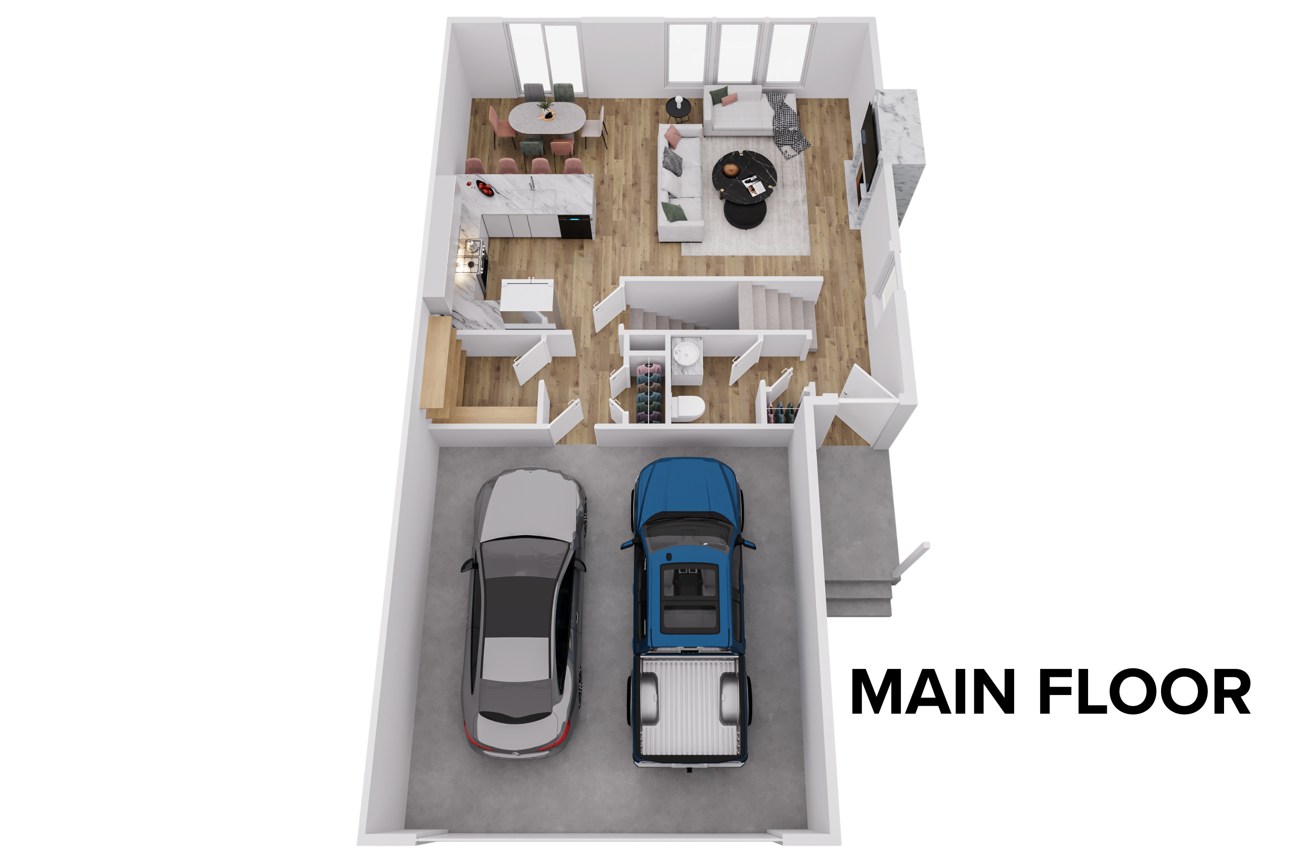 The open main level connects the kitchen, dining area, and great room, creating a welcoming environment for daily routines and entertaining. Upstairs, the second-floor primary suite and additional bedrooms provide privacy and separation from shared living spaces. A basement foundation adds future flexibility for storage or expanded living space.